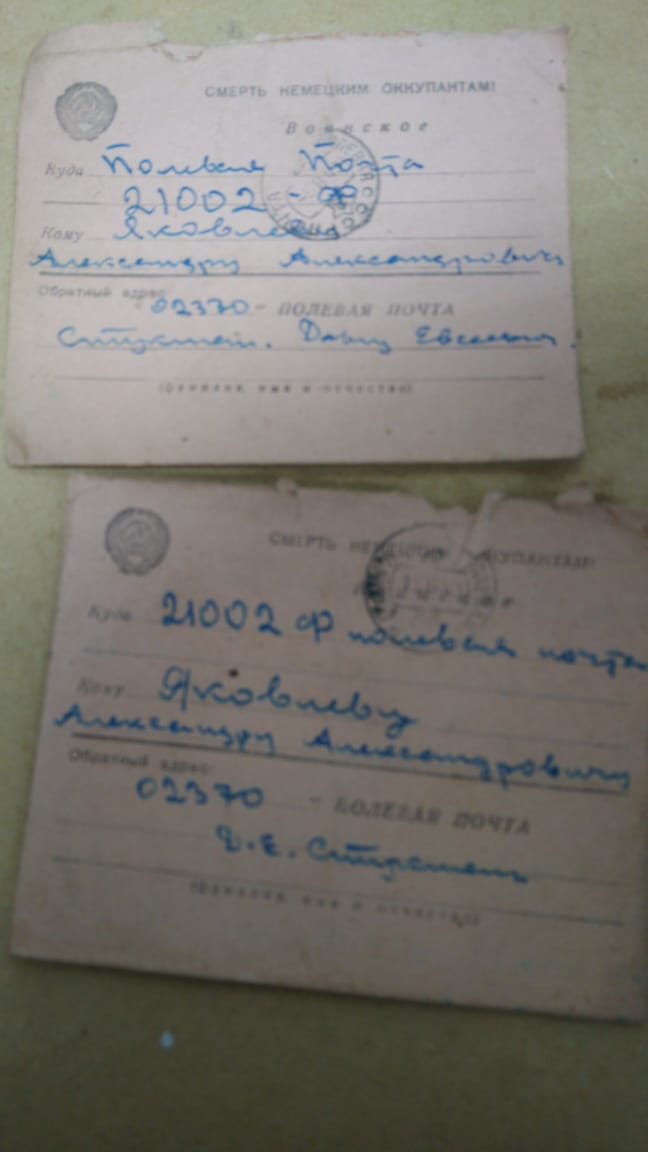 Сюжет предварительно понимаю так. Жили братья в Москве, одного направили в Петербург управляющим водоканала. У него был сын (расстрелян), жена и дочь(упоминаются в письме) как дядей и тётей из Ленинграда. Письмо одно из мединститута, а другое - из танковой учебки. Но адресат по линии родственников в Москве. Всплывает фамилия Яковлев. Он хорошо знает своих родственников в Ленинграде. Но письма с московским адресатом - оказываются на чердаке дома в Отрадном.