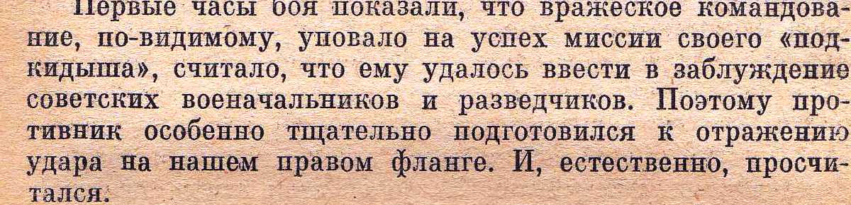 «Московская Дубровка!.. Здесь до сих пор героически удерживался плацдарм - «пятачок», захваченный еще в первый месяц блокады. Но теперь на этом «пятачке» проходило одно из направлений вспомогательных ударов Ленинградского фронта».