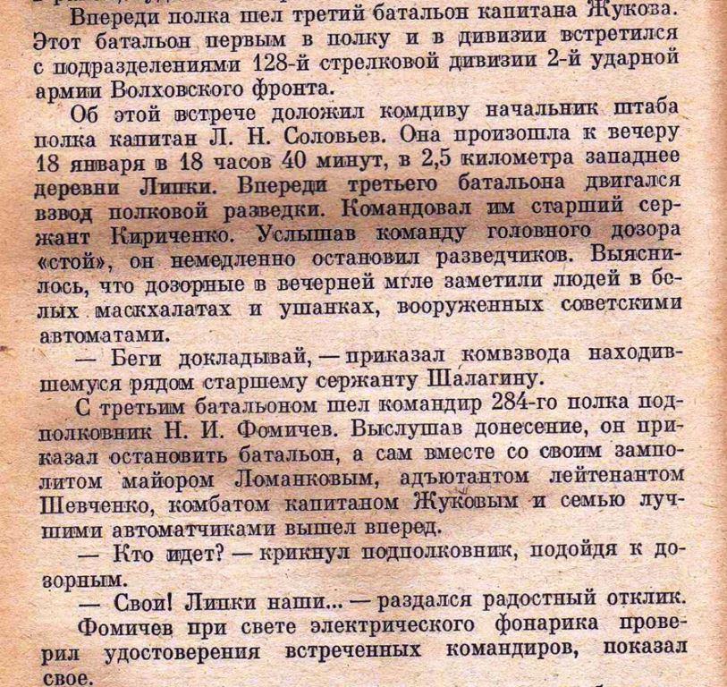 «...части Вашей дивизии 18 января первыми соединились с войсками Волховского фронта».