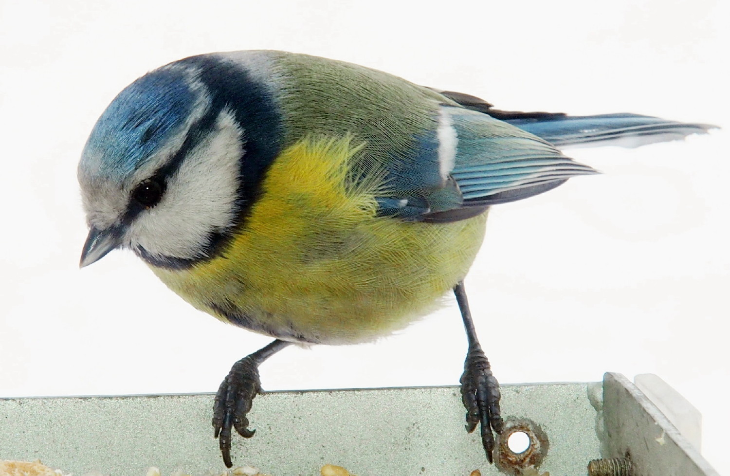В этом году кормушку посещали чаще всего лазоревки. Сначала они съедали все кусочки сала, а затем брались за семечки (очищенные, несолёные).