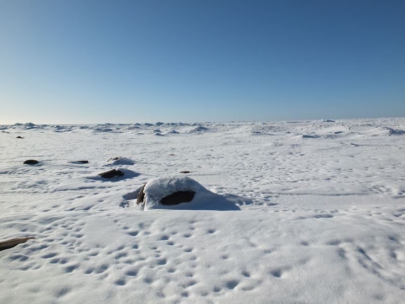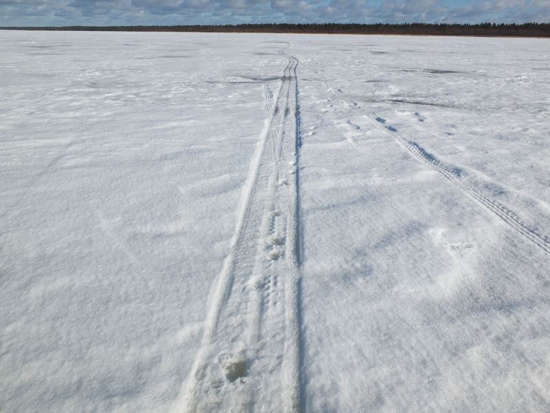 Аборигены рассказали, что пролив между материком и островом "встал" буквально месяц назад - еще в январе там рыбу на лодках ловили, а в некоторые годы льда нет вообще. Сейчас лед уже выдерживает разнообразную технику. Сколько лед продержится, предсказать невозможно - все зависит от погоды и особенно от ветра. Может простоять до апреля, а может через неделю весь изломаться. С внешней стороны острова Ладога тоже покрыта льдом, на сколько хватает глаз.