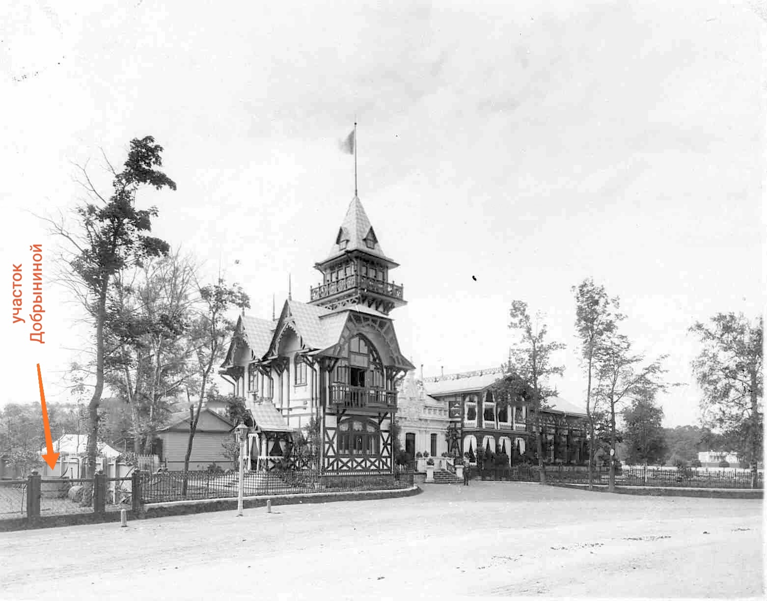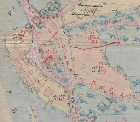 Состояние на 1913 (?) год, слева видно забор участка Добрыниной.