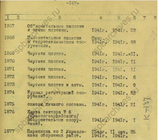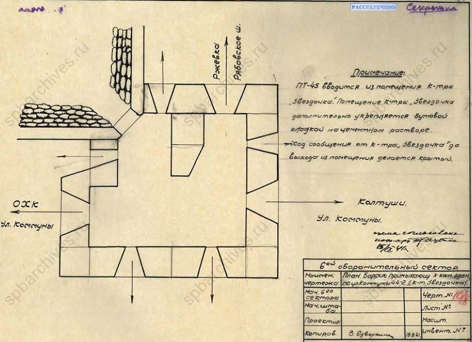 Список интересных документов (включая чертежи и карту сектора №6 (Красногвардейского) оборонительных сооружений)