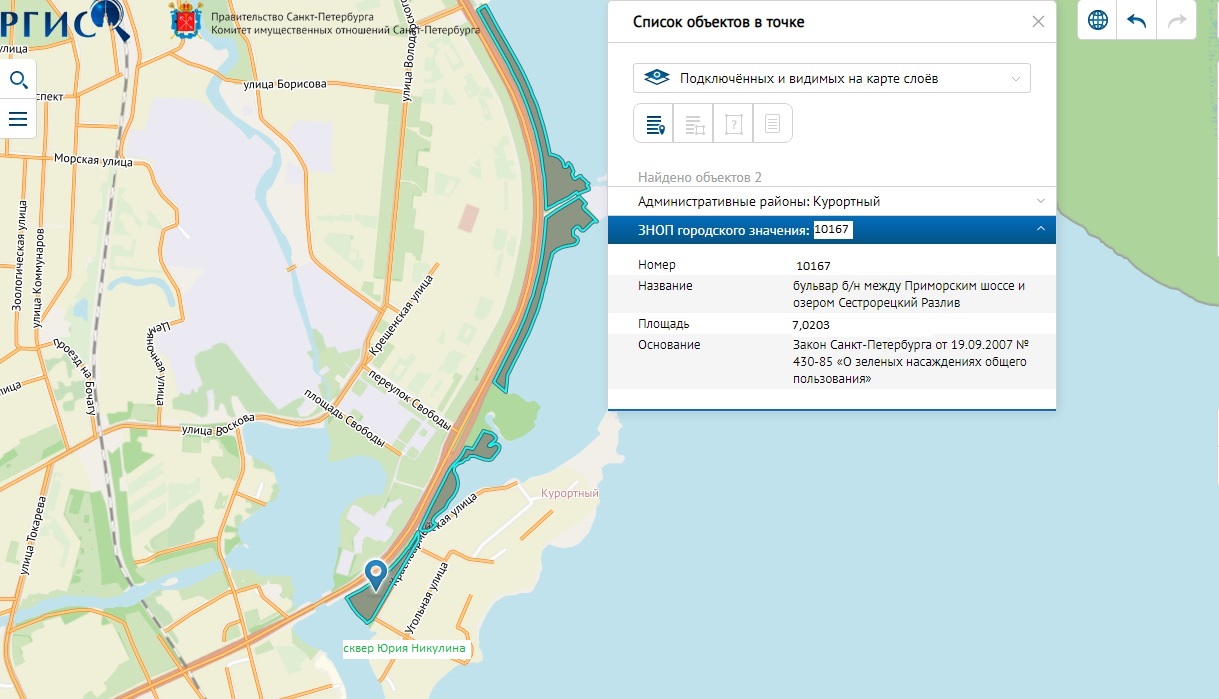 повторяется история со сквером Пограничников - от длиннейшего бульвара отрезается контур, но на этот раз - с южного конца. После очередной инвентаризации бульвар возродится как отдельный ЗНОП, а сквером Юрия Никулина останется треугольник между Приморским шоссе и Красноармейской ул. Пока же формально название на всю длину )