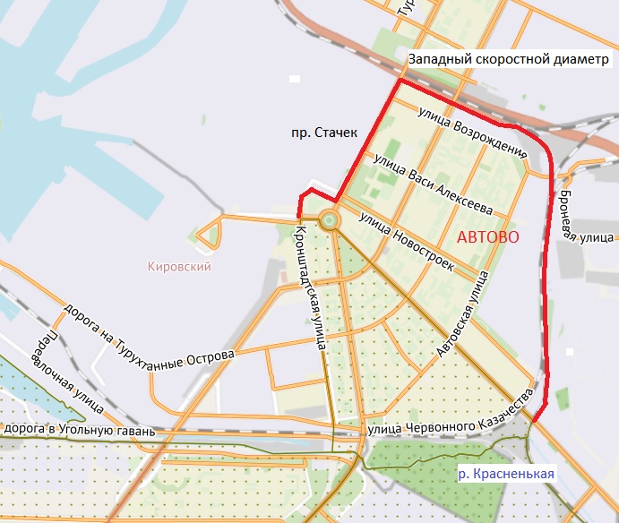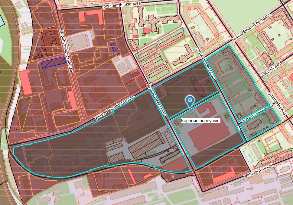 Участок Красногвардейской площади между Малоохтинской набережной и Новочеркасским проспектом выделен в