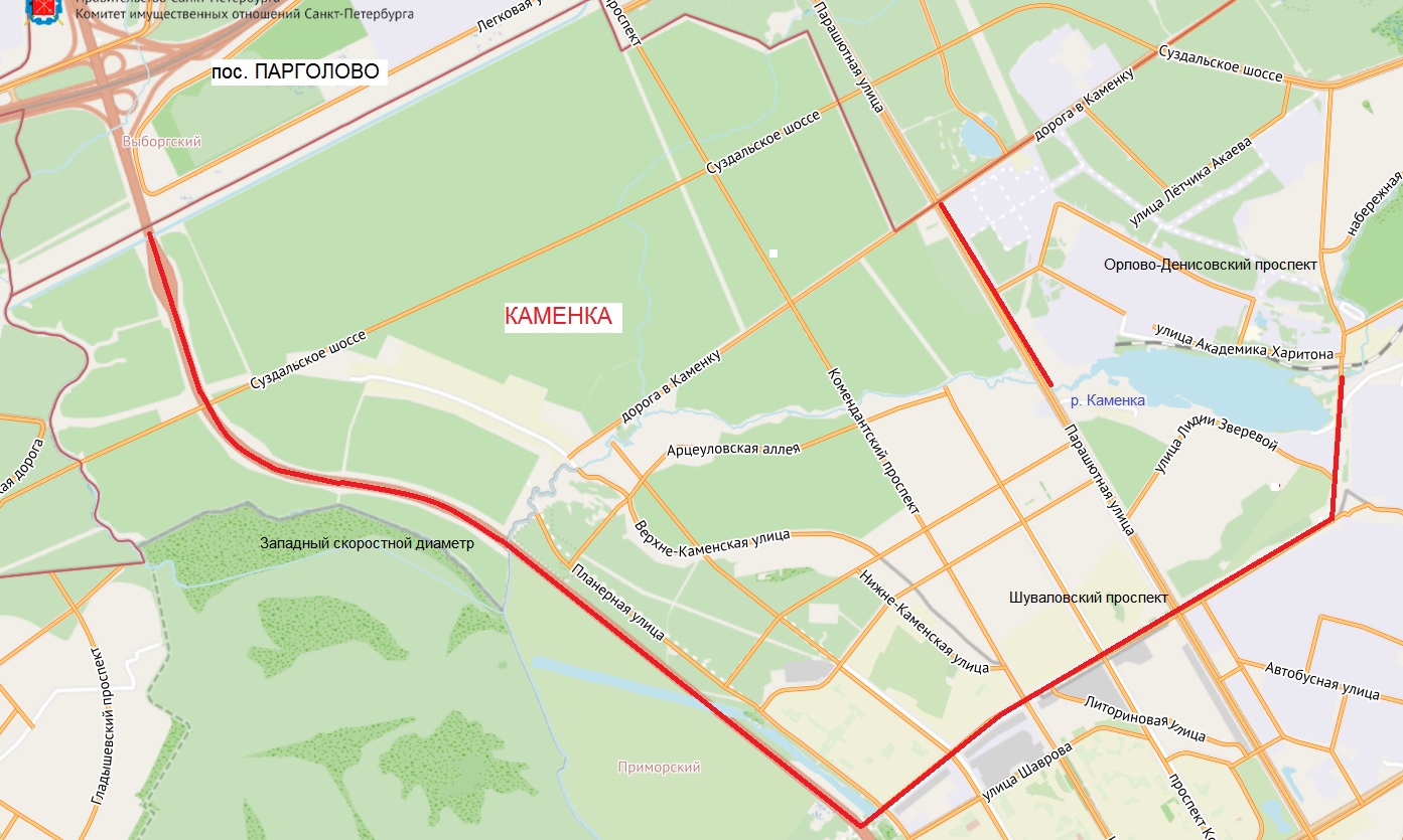 Красногвардейская пл. - между Комаровским проездом, Новочеркасским пр., пр. Шаумяна, Якорной ул., Среднеохтинским пр. и Большеохтинским пр. (перечисление против часовой, проезд упоминается)