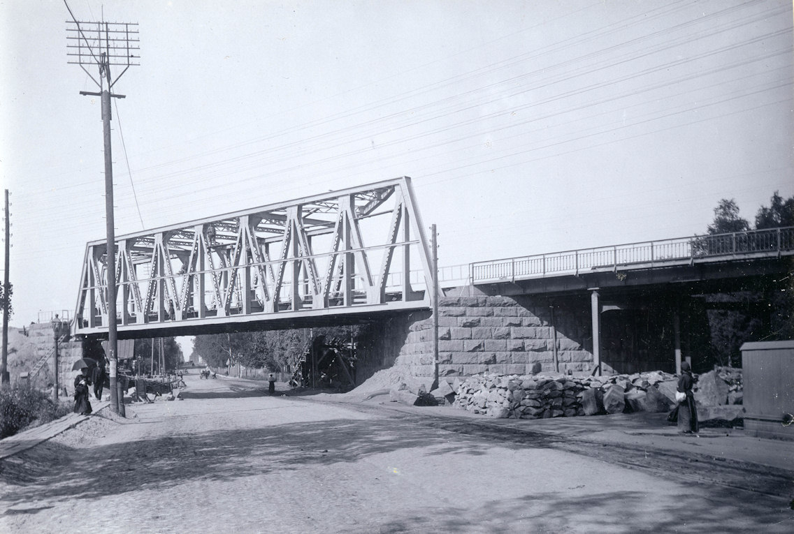 Увы, такой фотографии у меня нет. Самому хотелось бы тот мост видеть. Пока остается довольствоваться видом строительства моста через Флюгов переулок.