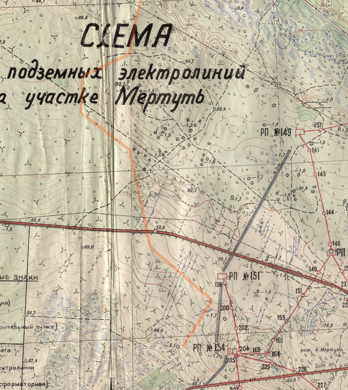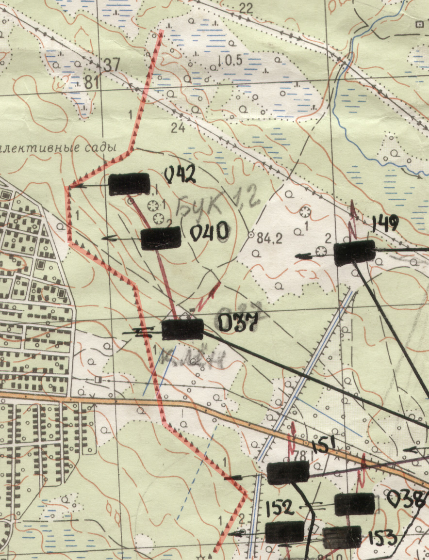 Рис.1 - карта с существующими надолбами на карте 1950х годов.