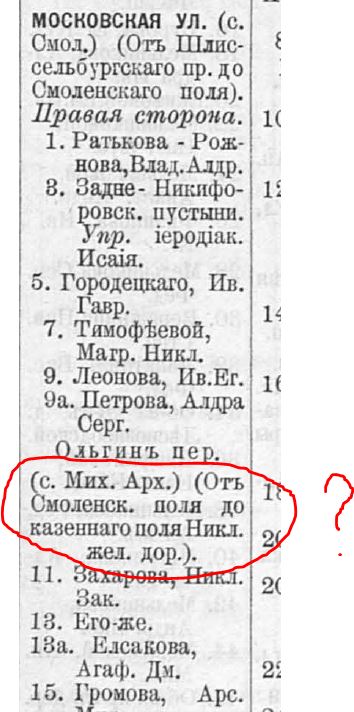 Да, спасибо за уточнения. Коллеги видимо вели отсчет от появления Ольгина переулка в списке по алфавиту, а в описании Московской ул. он с 1903. А вот "домовладелец Ольгин" это наследие Горбачевича и Хабло, откуда он взялся - непонятно.