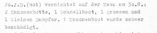 Из отчёта оперативного отдела (отдел Ia) XXXIX моторизованного армейского корпуса в штаб армии (XXXIX. Armeekorps (motorisiert)) в составе которого, части 20-ой моторизованной дивизии (20.Infanterie-Division(motorisiert)) вышли 30 августа на берег Невы.