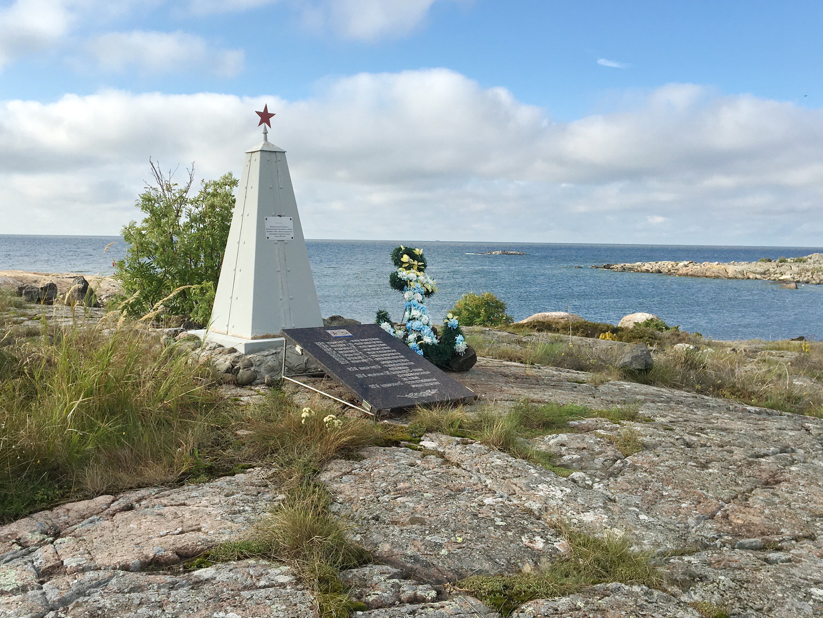 Памятник представляет собой пирамидку с красной звездой на шпиле. Установлен в мае 2018 года историко-патриотическим отрядом «Острова Балтийской славы» (г. Сосновый Бор) в районе захваченного нашими десантниками укрепрайона. Начиная с 2012 года отрядом под руководством А. Кириленко установлены обелиски на островах Малый, Мощный, Гогланд, отреставрирован на о. Сескар.