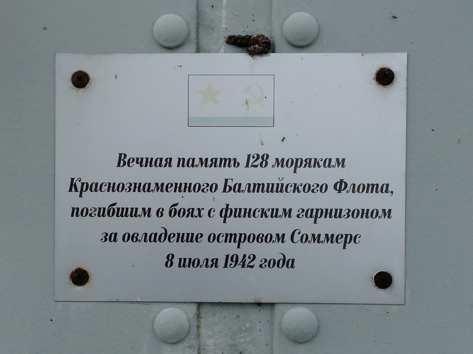 Памятная табличка на юго-восточной стене разрушенного Клуба базы Гогландского сектора БО КВМБ (быв. казино).