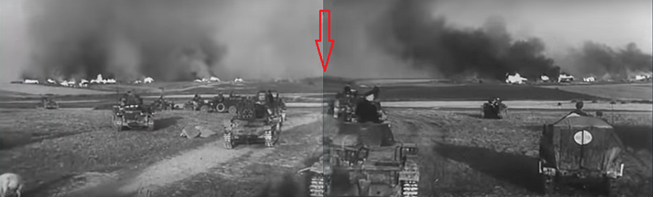 Пока руки не доходят, вернее глаза. У меня на жёстком диске более двухсот выпусков "Die Deutsche Wochenschau". Я уверен на сто процентов, что авторы этого фильма на ютубе, просто взяли кадры с одного из выпусков. Без всякой конспирологии. Просто там в основном отвратное качество и смотреть нужно, уменьшая просмотрщик в самый минимальный размер. Да и смотреть надо без звука- марши надоедают и бравый закадровый голос. По этой причине, например, не вырезал кадры штурма Выборга, финнами итд.