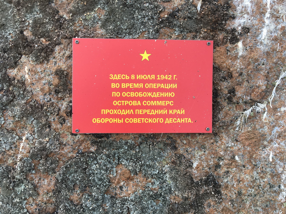 Здесь 8 июля 1942 года во время операции по освобождению острова Соммерс проходил передний край обороны советского десанта.