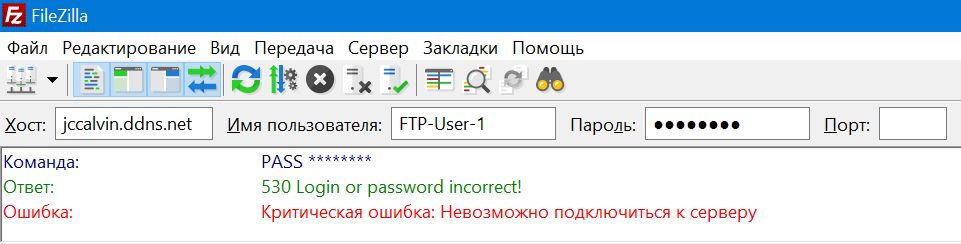 Пароль ввожу верный: SKNVr8du. Порт 21.