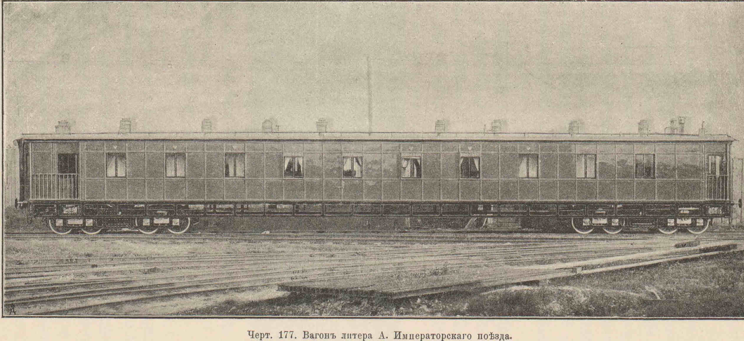 Показанный на чертеже вагон императорского поезда был построен на Александровском заводе в С-Петербурге, в его вагонных мастерских. Сейчас это Октябрьский электровагоноремонтный завод, расположенный на ул. Седова.