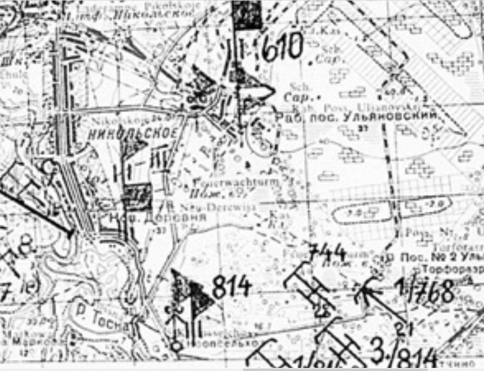 Просматривая документы LIV (54-го) армейского корпуса вермахта, наткнулся на документ с определением артиллерийских позиций в зоне ответственности 4-ой полицейской дивизии СС, на период осени 1942 года, где меня заинтересовала батарея №744, очень большого калибра 280мм. А поскольку 54-й армейский корпус участвовал в осаде и взятии Севастополя и осенью 1942 года, был переброшен под Ленинград, это меня заинтересовало вдвойне. Также эта батарея "проскакивала" и в документах 5-ой горной дивизии за этот период. Находилась она на берегу реки Тосна, при въезде в город Никольское(во время войны, населённый пункт Воскресенское) со стороны Отрадного. Несмотря на то, что артиллерия вермахта не входит в сферу моих интересов и, следовательно, документы Artillerie-Kommandeur 138 (Arko 138), меня не особо интересовали, я, как обычно, немного проработал эту тему для себя.