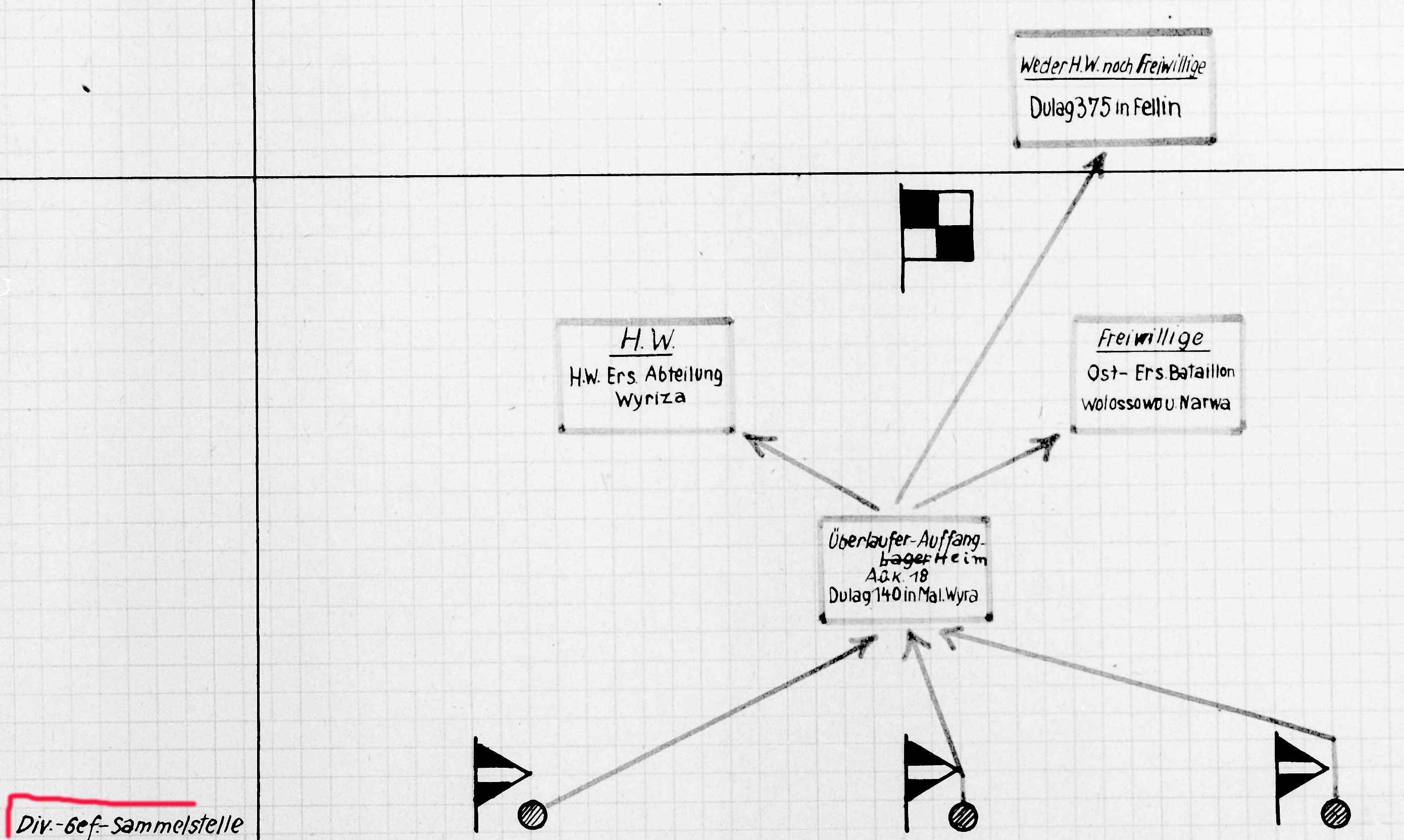 Ниже схема по учёту, этапированию и распределению в отношении перебежчиков. Примечательно, что зачёркнуто слово Lager [лагерь] и изменено на Heim [дом]