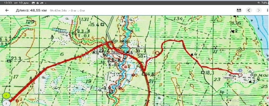 И конечно по дороге туда шли от точки к точке, кривулями. Потому что дорога исчезла незадолго до выхода из леса и по полям шли, как удобнее, стараясь держать направление на точку.