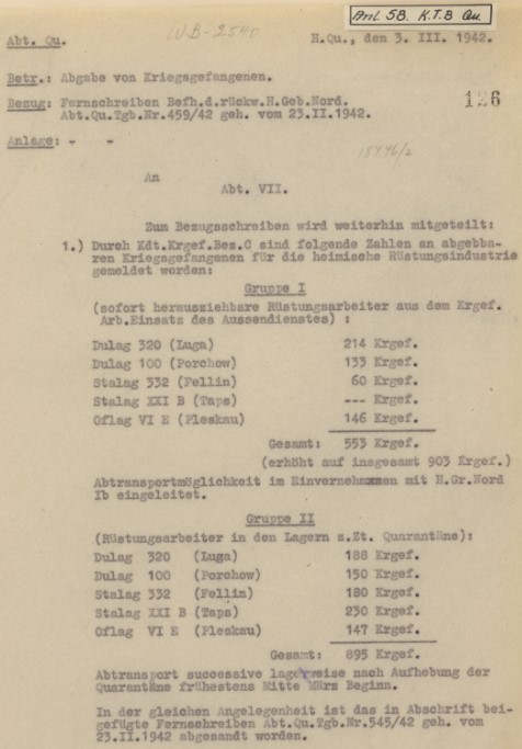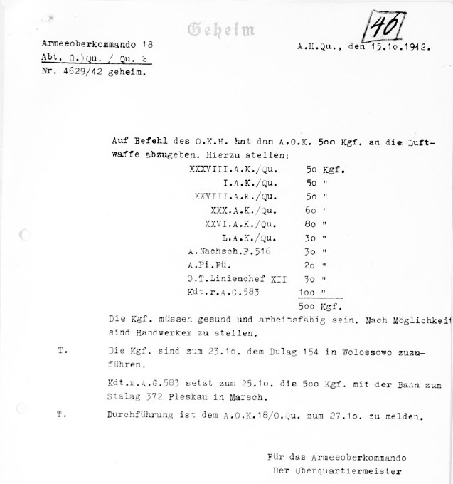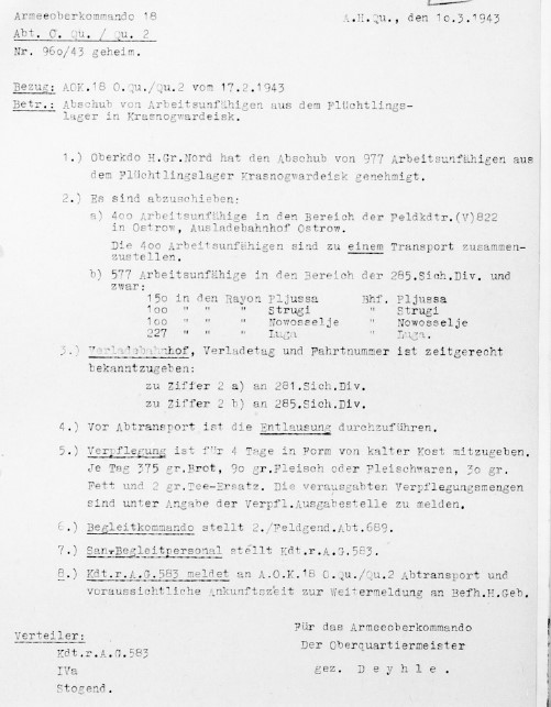 Das zivilinterniertenlager in Weimar wird aufgehoben und mit dem gleichartigen lager in Kingissep vereinigt 5.42