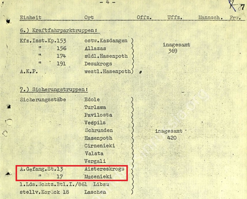 Armee Gefangenen-Sammelstelle 13 Mjedwjed(8.41),Nowosokolniki (8.41),Szoltzy(8.41),Nowgogrod (9.41),Schimsk (9.41), Tschudovo(9.41), Mjedwjed (10.41), Grysino(Botanovka) (11.41), Batietzkoja(2.42.), Aschewa (4.42) филиал Loknia, Beshanizy.