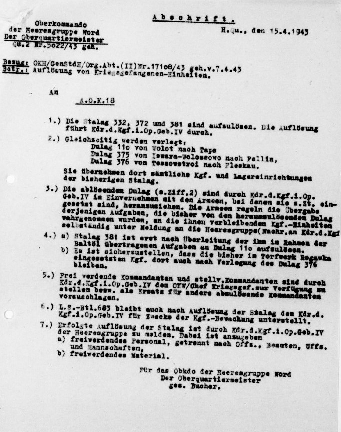Armee Gefangenen-Sammelstelle 17 in Krasnoje Selo(1.42) филиал Witke, севернее Новгорода (6.42.), Tessowstroj, Finev Lug, in Wyriza (11.42).