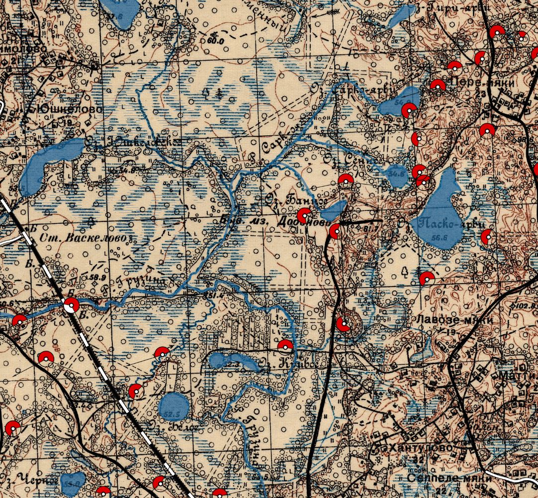 Номера дотов в Медвежьегорске и на Масельской линии отмечали литерой V.