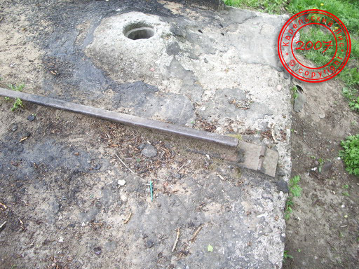 Прямоугольная бетонная коробка около усадьбы "Александрино" размерами примерно 4х2. С одной стороны дверной проем, с другой-отверстие примерно амбразурного размера, заложенное кирпичом. направление стрельбы - фланкирование оврага западнее усадьбы. Внутренняя перегородка делит бункер на 2 помещения: тамбур и комнату, скажем так. Крыша укреплена рельсами (трамвайными или узкой колеи?). Гидроизоляция-битум. Из-под бункера виднеется минимум 7 штук металлических кабельных вводов. В крыше отверстие со следами обсадной трубы. Внутри все по крышу заср...хм, несколько грязновато :)