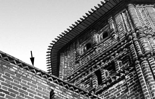 ПОРЕБРИК - вид орнаментальной кирпичной кладки, ряд кирпичей, уложенных под углом к наружной поверхности стены.