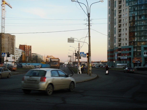 а правее ( с некоторым промежутком - на ТОППЛАНе здесь трикотаж.фабрика) сейчас начинается Северный пр. Помнится в конце 70-х на месте нынешнего начала Северного пр. была небольшая горушка, где размещалась ментовка № 36 (может и запамятовал)(сейчас на Есенина-2)и точно кольцо автобуса № 33.
