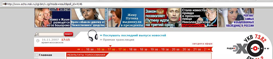 И Вы во всё это верите? [сообщение #37238 является ответом на сообщение #37231] пт, 16 ноября 2007 17:20 Переход к предыдущему сообщенияПереход к предыдущему сообщения