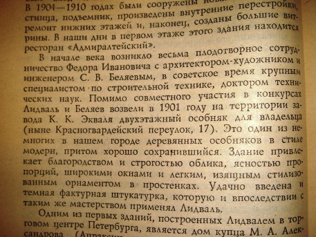 Вот текст из книжки "Фёдор Лидваль" серии "Зодчие нашего города" 1987 г. Но привлека внимание фраза об особняках в стиле модерн. Где же эти особняки? Сохранились ли?