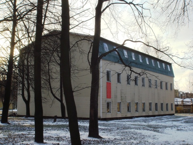 А это обшитый сайдингом дом 40 по Полюстровскому пр. На вид крепкая была избища (пока не обшили). Жен.консультация в доме 25 по Кондратьевскому пр.