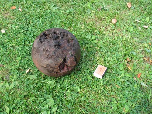 Найдено было в районе Орехово на тыловых позициях финских артиллеристов. Всего таких ядер три. Гложат сомнения, ядра ли это? Уж больно большой калибр...