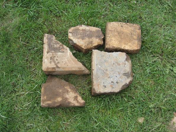 А вот чтоя нашел у самой ул. Бутлерова(напротив дома 28) летом 2007,когда там копали канаву под кабель. Мало того,что какая-то ----- разбила их на куски(думаю,что с применением инструментов),но и закопала их в сотне метров от самого кладбища.