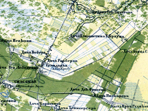 В соседней теме , вы , Сергей спрашивали про "дачу Белая", может рапознаете, на карте много дачь. Сейчас пытаюсь раскопать что нибудь о владельцах. Найду , выложу. Кроме этого на карте есть немецкое кладбище на будущей улице Бутлерова. Насколько я видел это единственная карта , где обозначено кладбище , за исключением , карты ,опубликованной(помоему Вами, могу и ошибится) в газете "Гражданка", только там писали о топографической карте 1858года.