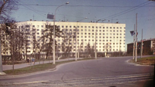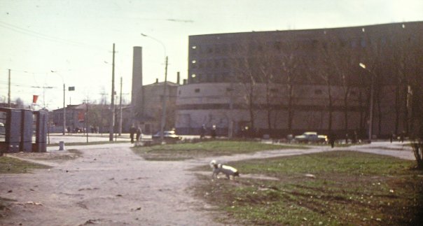 Пытаюсь определить место съемки. Если впереди - телефонная станция, то мы стоим на углу площади и 1 Муринского(тогда Шверника),там где сейчас одна из башен.Значит,слева должно быть не общежитие, а "Пентагон"...