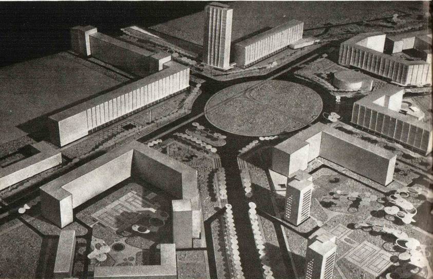 Вот макет площади Мужества из книги 1966 г. Бартенев И.А. "Современная архитектура Ленинграда".