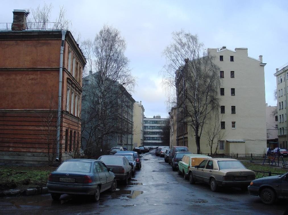 По этой картинке сложно оценить, но вообще фасад снесенного дома (того из них, который выходил на Финляндский) был достаточно широкий, имелся даже открытый дворик.