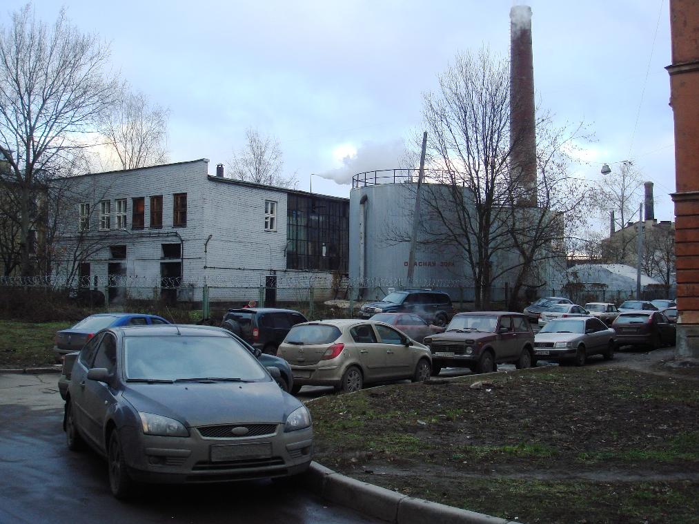 На предыдущем фото за трамваем 4-х этажное здание, то что слева за стоянкой. Слева Астраханская улица (со зданием котельной), справа - Саратовская улица. На дальнем фоне светлое здание завода "Двигатель" на Сахарном пер. Вот современное фото улиц и котельной на 12.12.2007.
