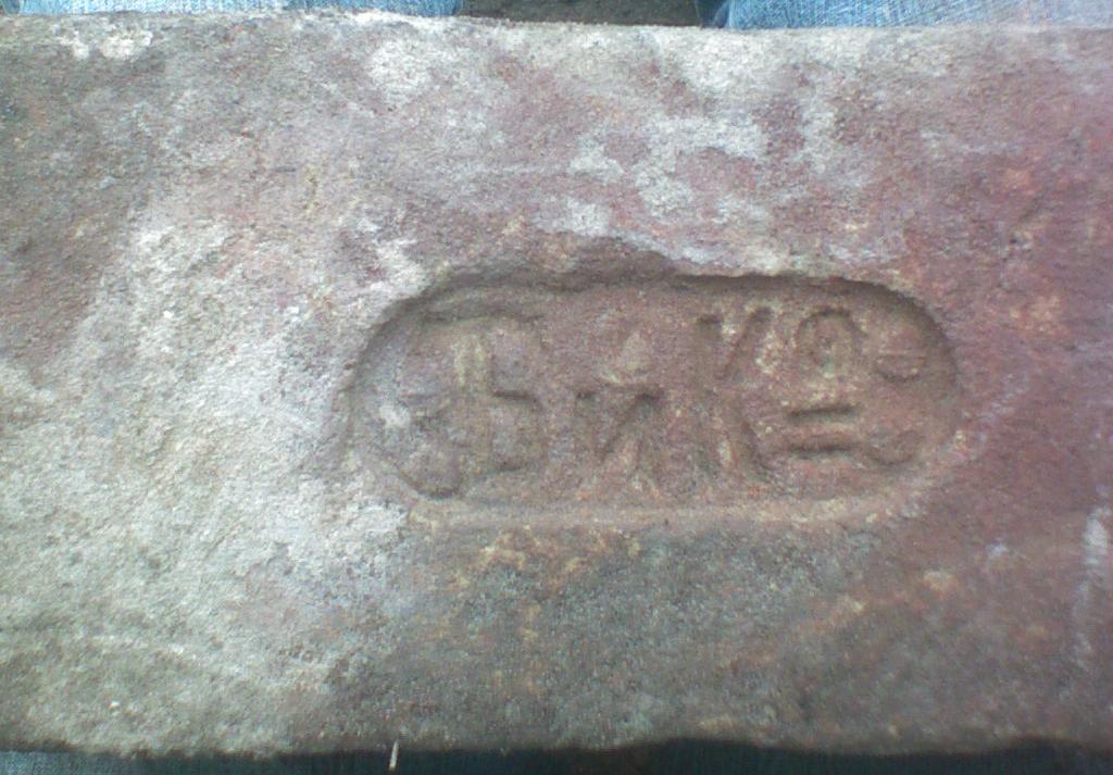 Если первая буква "Б", то я пока не располагаю никакими сведениями о том, кто и где его производил (фамилий владельцев, начинающихся с этой буквы, довольно много). Судя по клейму, кирпич довольно старый, я бы сказал около 1870-х. Мне более знаком кирпич "ВиКо", который производился на территории нынешней Кировской области, в частности из него построены церковь в дер. Гавсарь и несколько строений в окрестностях.