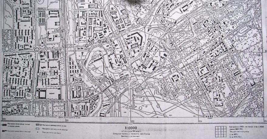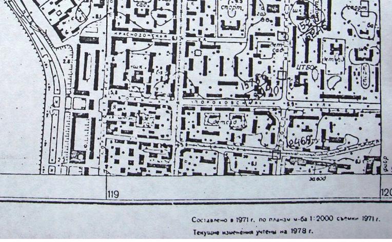 Две фотокопии топоплана (1:10 000) этого района. Действительно раньше трам.пути проходили по ул.Панфилова и местному проезду(???) между улицами Лазо и Коммуны.