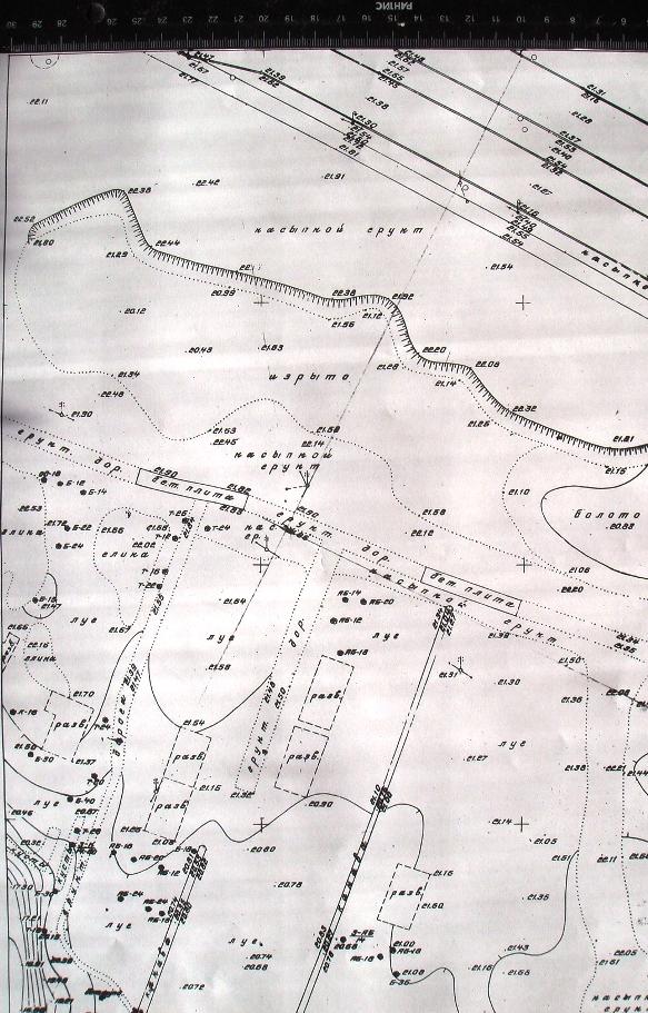 Опять выкладываю топоплан (надеюсь не замучил). Вчера удалось получить топоплан треста ГРИИ в масштабе 1:500 - годы 1973-80 ( в 1 см - 5 метров - для наглядности есть линейка, соответсвенно между крестами 50 метров). Район пересечения Гражданского пр. и Муринского ручья. На нём показаны 9 каких-то развалин на левом берегу (похоже на деревню Ручьи) и одна на правом. А вот на топоплане в масштабе 1:2000 (год примерно 1977) эти развалины уже не показаны. На первом фото два совмещённых листа, на втором и третьем отдельно левый лист и отдельно правый (может лучше видно).
