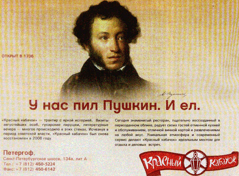 Остается только посетить Ново-красный ресторанчик и посмотреть нет ли записей А.С. в жалобной книге.