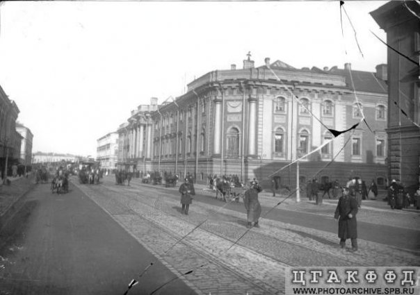 Двухпутка пройти в узкий проезд за Новосильцевской богадельней не могла - посмотрите на него, там сейчас вообще еле трамвай поместится.