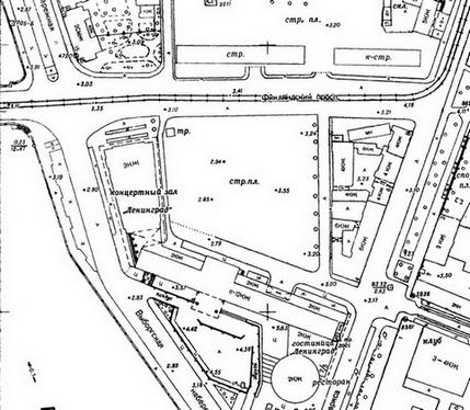 По этой картинке сложно оценить, но вообще фасад снесенного дома (того из них, который выходил на Финляндский) был достаточно широкий, имелся даже открытый дворик.