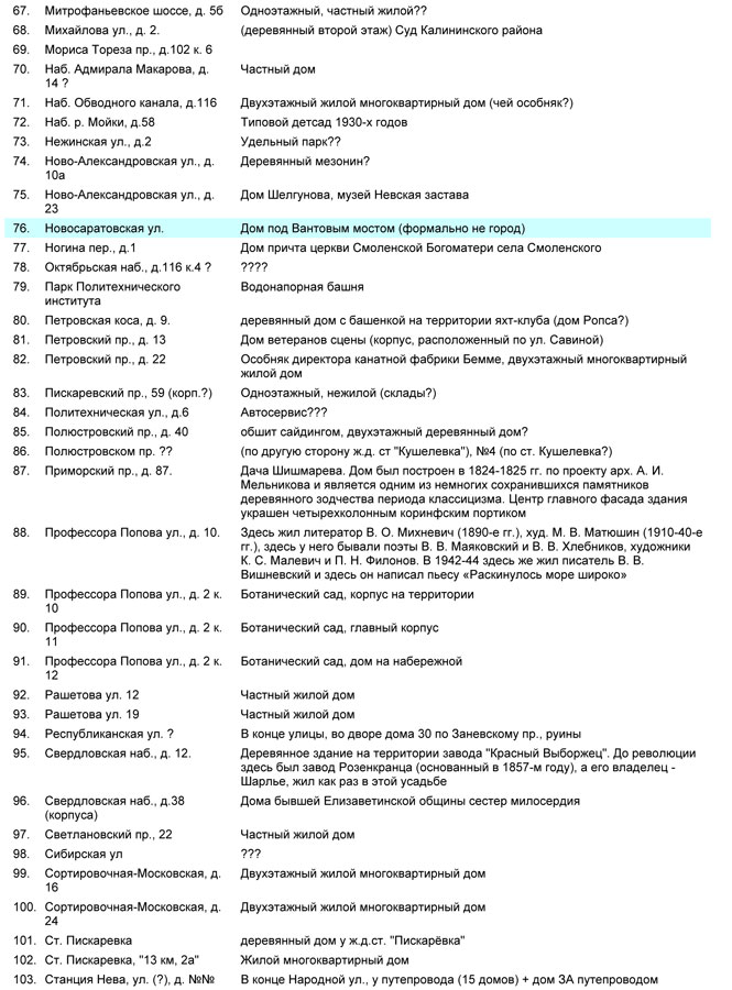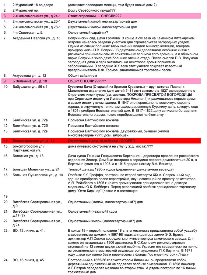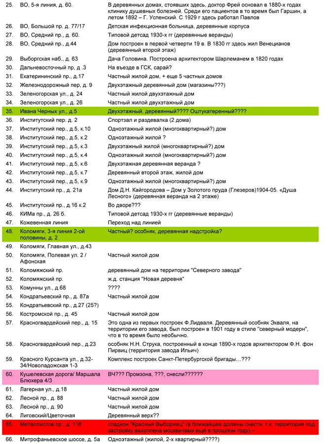 В списках не видел дом на углу проспекта Медиков и Ак.Павлова - там около стадиона дом - обрушилась штукатурка и видны деревянные балки. Кстати съемка подтверждает что это деревянный дом.