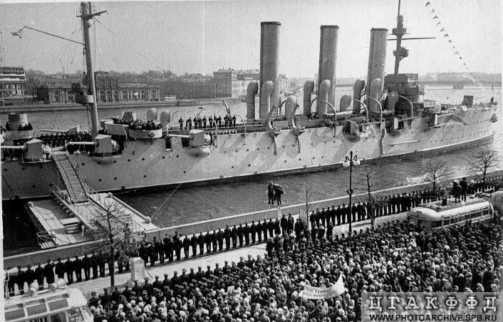 А наснимке - вручение крейсеру "Аврора" ордена Октябрьской революции.