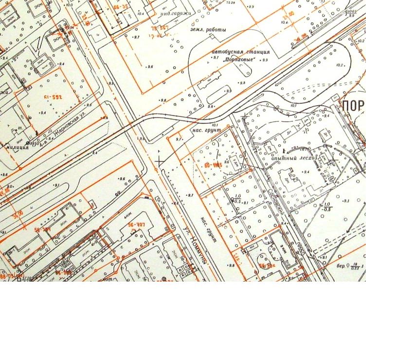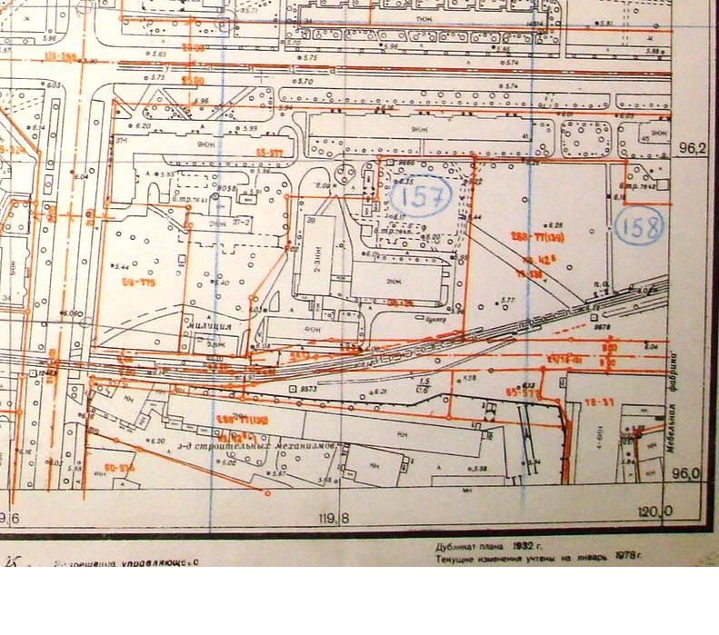 Мужик (из гаража) сказал, что кинотеатр звездочка стоял аккурат на месте перекрестка коммуны и Ириновского, а трамвай тогда шел совсем по другому. Девушка, которая сейчас на постоянке в немции, но тоже из ранних на ржевке пишет, что к кольцу автобусов все тогда по сосновскому ходили. Стал рассматривать карту старую. Нихрена на ней не понять. Сначала пытался в Corel PHOTO-PAINT чистить и потом в CorelDRAW обводить, но быстро запутался. Тогда распечатал нужный фрагмент карты и обвел интересующие детали фломастером. Ну а дальше понял, что результат быстрее получить тем способом, какой собственно и применил. Сейчас думаю, что надо все-таки найти нормальную старую карту, перевести ее в векторный формат и наложить на то, что сейчас понастроили.