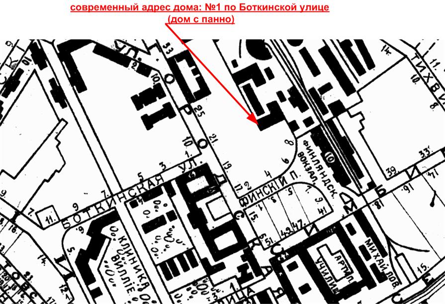 д. 1 по Боткинской ул. - бывший жилой комплекс для служащих Финляндской ж. д., 1907-08, арх. Ф. Ф. Миритц, И. И. Герасимов.